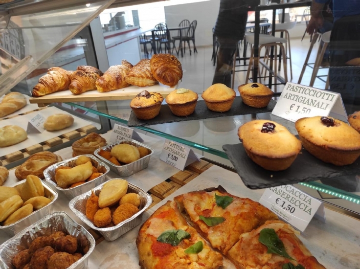 Qui puoi gustare cappuccini cremosi, caffè espresso perfetto, cornetti appena sfornati e dolci di nostra produzione, ideali per una colazione veloce o per un momento di dolcezza durante la giornata.